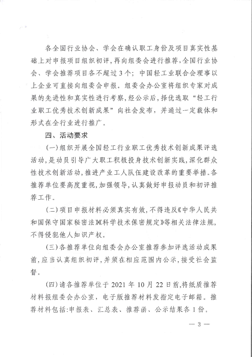 关于开展轻工行业职工优秀技术创新成果评选交流活动的通知 (糖心视频在线)