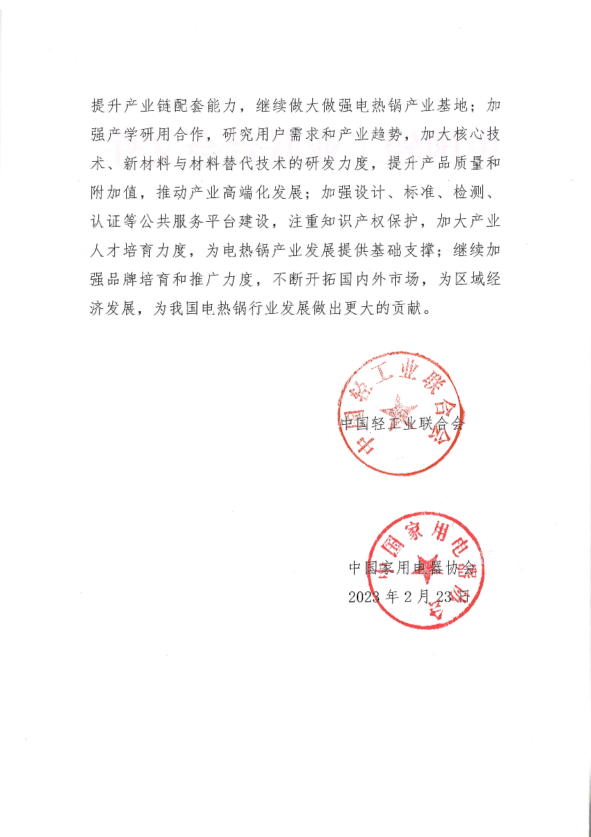 关于继续授予山东省淄博市周村区“中国电热锅产业基地·周村”称号的通知