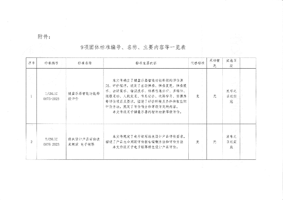 关于批准发布《键盘乐器智能功能等级评价》等9项团体标准的公告
