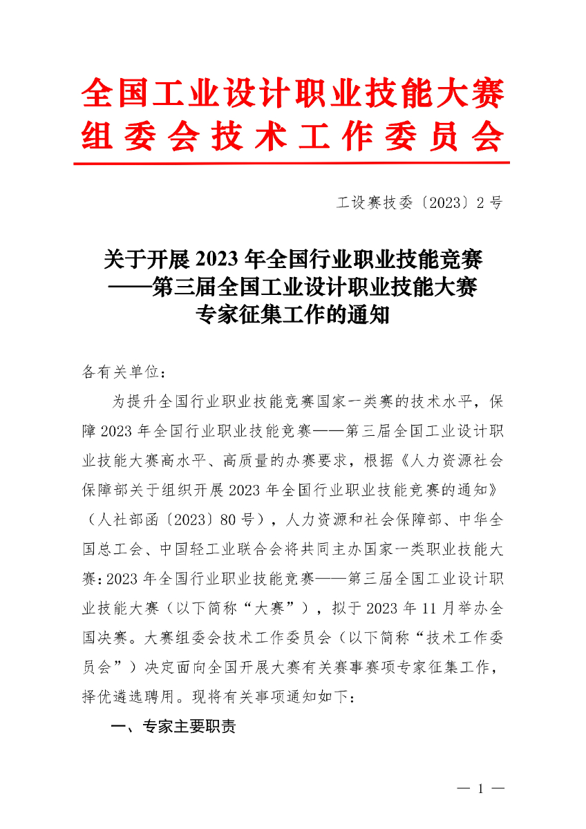 关于开展第三届全国工业设计职业技能大赛专家征集工作的通知