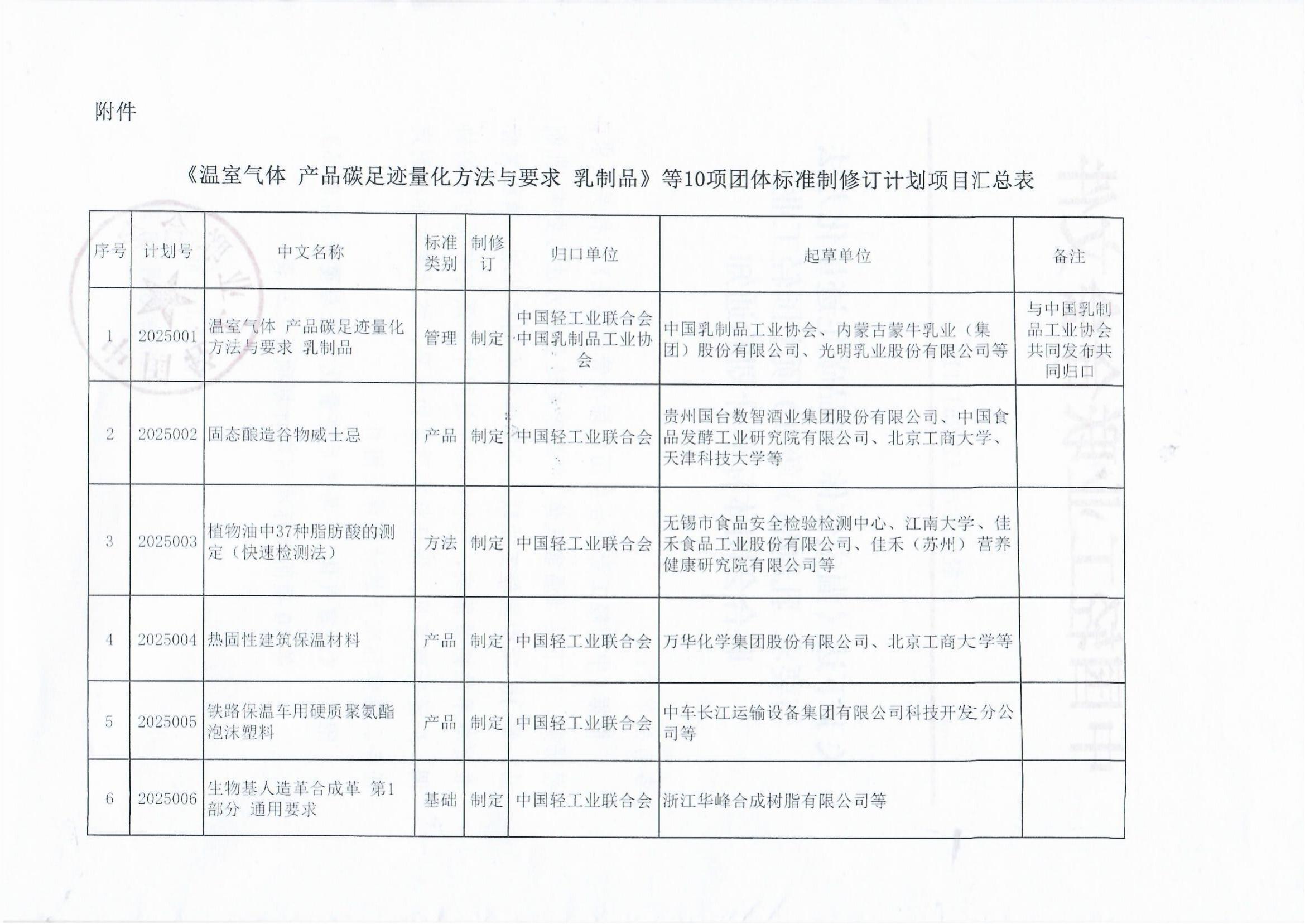 关于下达《温室气体产品碳足迹量化方法与要求乳制品》等10项糖心视频业联合会团体标准计划的通知